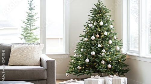 christmas, holiday, home, interior, tree, decoration, light, gift, living room, furniture, warmth, joy, celebration, winter, cosy, seasonal, indoor, greenery, ornament, present, stylish, ambience, calmness, scandinavian, modern, design, white, clean, rustic, comfort, space, natural, cheerful, festive, bright, family, traditional, peaceful, scene, aesthetic, holiday spirit, joyfulness, invitation, relaxation, light, homelike