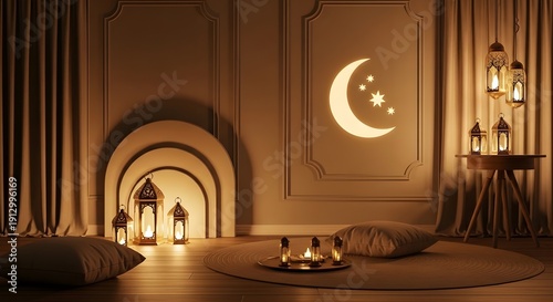 Cozy Ramadan Night Interior with Lanterns and Floor Seating