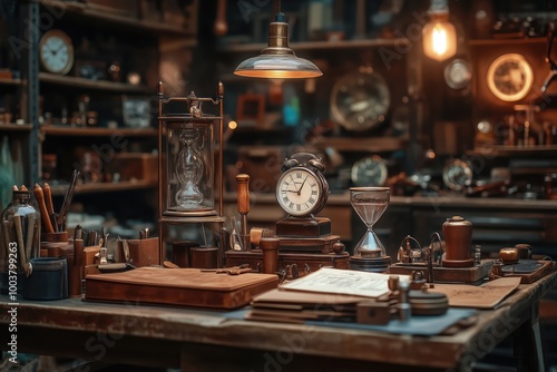 Cozy Vintage Workshop With Antique Clocks and Tim