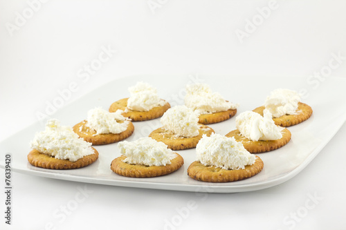 cracker, snack, cream cheese, widener, whipped, canape, white, closeup, delicious, brown, cube, wheat, epicure, herb, treat, salted, gold, crispy, food, finger food, round
