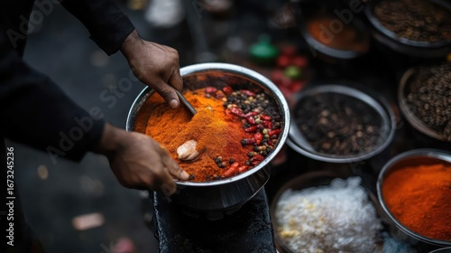 spice, herb, blend, mixing, preparation, cooking, flavouring, seasoning, ingredient, culinary, traditional, asia, food, market, texture, aromatic, vibrant, colours, hand, skill, seller, spice, pepper, masala, turmeric, curry, artisan, detail, fragrant, favor, hot, meal, natural, organic, piquant, cookery, local, retail, sale, gastronomy, zesty, tasty