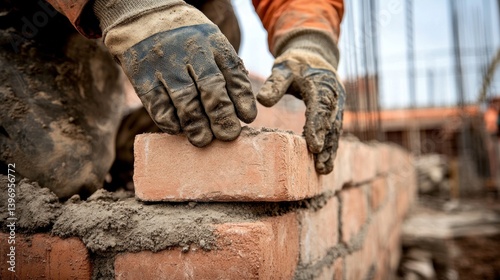 Crafting permanence: A mason diligently layers bricks for enduring architecture