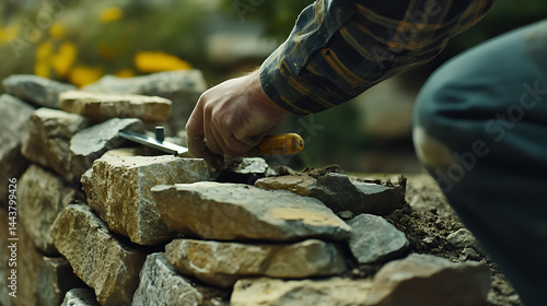 stone wall, construction, hand tool, hammer, chisel, stone, work, craftsmanship, repair, building, garden, landscape