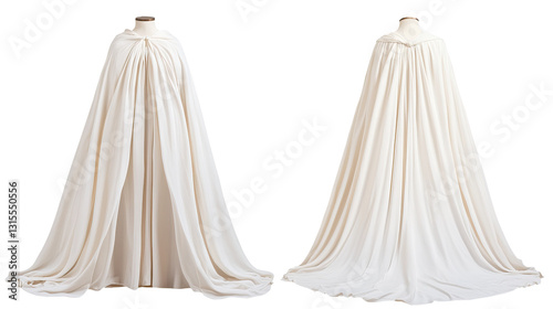 Cream cloaks, studio shot, draped fabric, white background, fashion