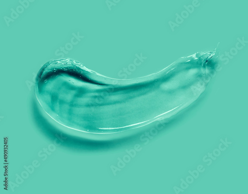 Cream gel green transparent cosmetic sample texture with bubbles isolated on white background
