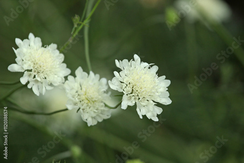 Cream scabious pincushion, Scabiosa ochroleuca, in flower.