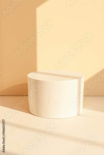 pedestal, cylinder, beige, off, white, sunlight, minimalist, background, cream, pale, yellow, warm, soft, glow, texture, cylindrical, form, light, shadow, shape, simple, clean, modern, aesthetic, display, product, design, element, composition, scene, setting, studio, template, branding, advertising, marketing, promotion, visual, presentation, serene, calm, peaceful, tranquil, subtile, elegance, style