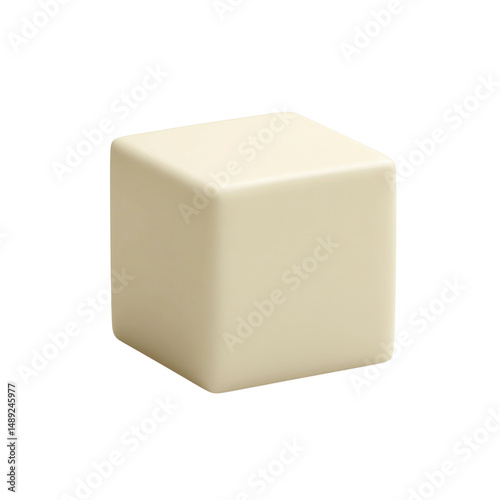 Creamy Beige Cube Minimalist 3D Render of a Simple Geometric Shape