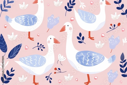 Creamy Birds Seamless Pattern - Digital Illustration With High Quality Pixels Can Be Used For Print On Demand . Beautiful simple AI generated image