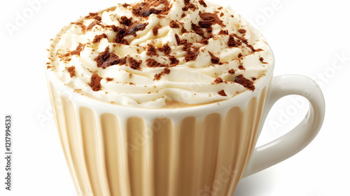 Creamy coffee drink, whipped cream, cocoa, white background, menu use