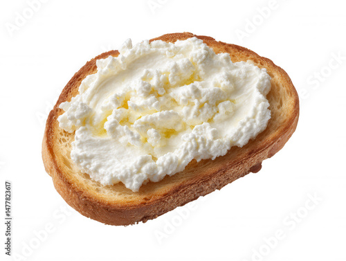 Creamy Cottage Cheese on Toasted Bread Slice Fresh Breakfast Option on White Background