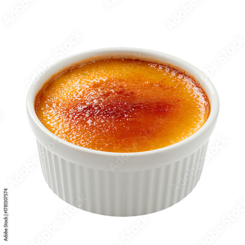 Creamy Custard Dessert Served in a White Ramekin With a Caramelized Sugar Top