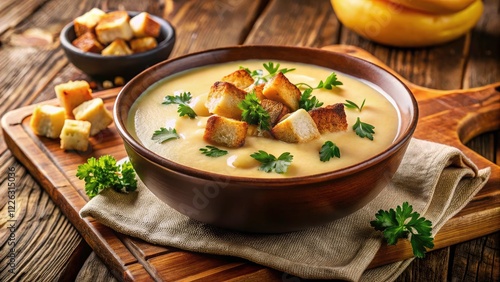 Creamy Potato Soup with Croutons - Rustic Autumnal Portrait Photography