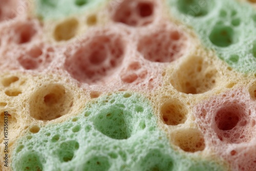 Creamy rainbow sponge, a kaleidoscope of pastel bubbles, evokes eco-cleaning dreams and whimsical, water-based celebrations like Songkran