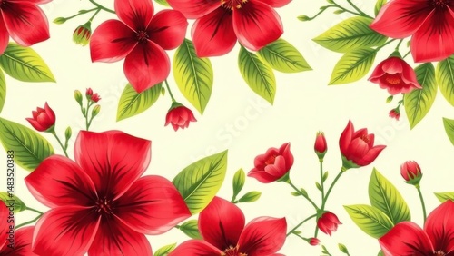 floral, pattern, creating, red, flower, spring, vector, design, floral pattern, flower, blossom, bloom, botanical, plant, illustration, springtime, graphic, decorative, ornament, nature, background, surface, repeat, repeating, seamless, textile, fabric, wallpaper, art, artwork, digital, image, element