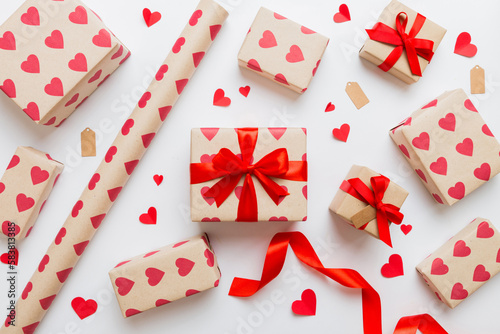 gift, box, bow, colours, coral, present, holiday, ribbon, paper, celebration, background, birthday, decoration, surprise, red, package, table, concept, happy, white, view, greeting, top, giving, merry, holding, love, day, decorative, up high, festive, closeup, craft, design, wrapping, tied, shopping, topview, nubes, flat, lay