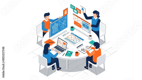 isometric, teamwork, collaboration, design, office, technology, meeting, creativity, digital, workspace, planning, brainstorming, group, discussion, project, computer, innovative, graphic, professional, modern, development, communication, business, corporate, tech, interactive, innovation, productivity, strategy, creative