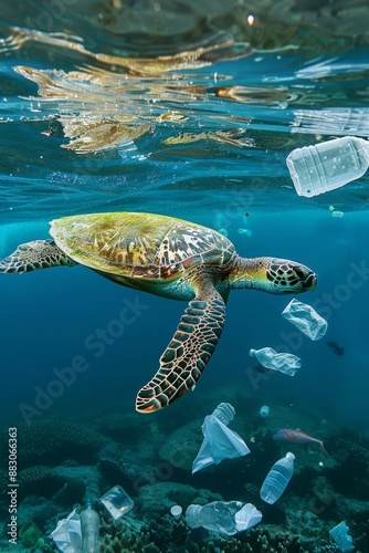 creatures like sea turtles and dolphins affected by plastic waste and chemical contaminants in the oceans