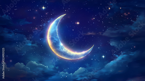 Crescent moon and stars: a celestial night. Astral Luster. Illustration