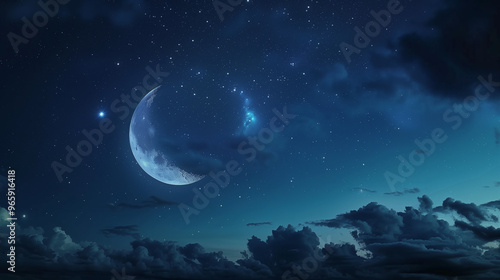 moon, crescent moon, night, starry sky, star, cloud, night sky, celestial, sky, dark, evening, twilight, astronomy, peaceful, serene, tranquil, moonlight, glowing, half moon, cosmos, space, dreamy, quiet, night time, outer space, beauty, horizon, galaxy, atmospheric, blue skies, cosmic, gloaming, clear sky, starlight, heavenly, full moon, moonrise, mystery, nocturnal, dark sky, mystical, scenic
