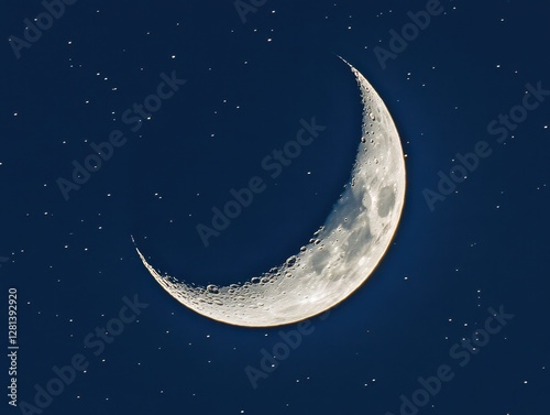 Crescent moon in the night sky with stars illuminating the dark blue background celestial scene astronomy