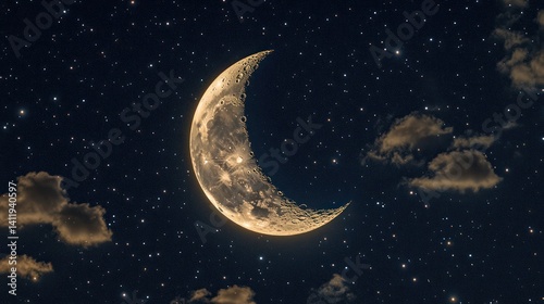 moon, crescent, night, sky, star, cloud, cosmic, universe, celestial, space, astronomic, galaxy, cosmos, nebula, light, dark, bright, glow, landscape, nature, beautiful, huge, amazing, serenity, calmness, peaceful, stunning, view, image, photo, astro, starry, lunar, phase, twilight, horizon, serene, astronomy, outer, beauty, digital