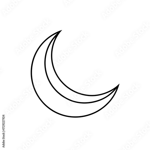 Crescent moon shape with black outline art silhouette