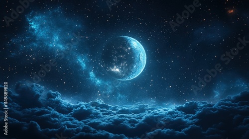 night, sky, moon, star, cloud, nebula, space, cosmic, celestial, galaxy, dark, blue, night sky, starry, cloudy, aethereal, dreamy, magical, mystical, serene, tranquil, peaceful, calming, beautiful, vibrant, fantasy, artwork, digital artwork, illustration