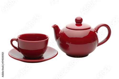 Crimson teapot cup saucer isolated on a transparent background
