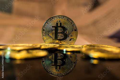 Criptomoneda con reflejo entre otras monedas