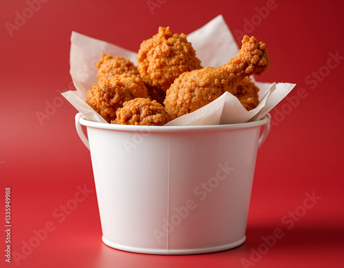 Crispy Fried Chicken Legs and Fries on Vibrant Red Background