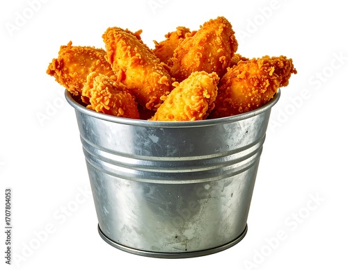 Crispy fried chicken wings in a metal bucket