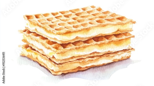 Crispy wafer featuring creamy layers Watercolor illustration of pastries for menus labels packaging recipes bakery or cafe set against a white background