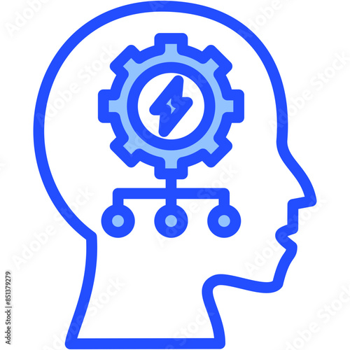 thinks, thought, gear, cognition, education, psychology, planning, solution, mental health, structure, brainstorm, icon, line, lineal, outline, blue, colours