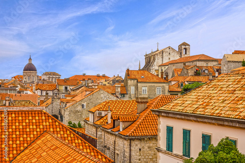 Croatia. Ancient town Dubrovnik sunset panoramic view