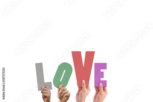 no people, man, woman, part of, people, colourful, colours, alphabet, spelling, holding, hand, character, communication, concept, font, information, language, lettering, letter, signs, symbol, text, typo, typography, word, conceptual, white background, studio shot, isolated, cut-out, many-coloured, cropped, love
