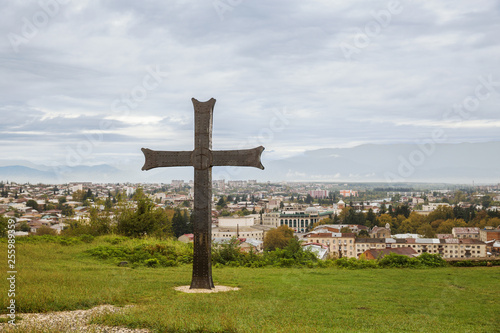 georgia, cross, view, skyline, city landscape, mountain, building, georgian, sky, caucasia, city, architecture, stone, travel, landscape, landmark, day, old, history, panorama, church, tour tourism, house, europa, cathedral, historic, religion, culture, block, orthodox, town, traditional, district, neighbourhood, colourful, green, nature, home, residential, country, beauty, autumn, range, vale, cloud, hill