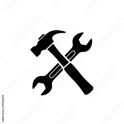 hammer, wrench, tool, construction, repair, handyman, skilled, silhouette, black, icon, vector, industry, building, craftsmanship, illustration, isolated, graphic, logotype, design, maintenance, workshop, hardware