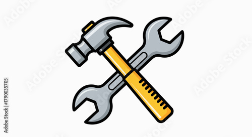 hammer, wrench, tool, hand tool, crossed, illustration, vector, icon, repair, maintenance, construction, hardware, bricolage, mechanic, handyman, workshop, equipment, fixing, service, support, utility, engineering, building, carpenter, plumber, automotive, home improvement, logotype, symbol, graphic, simple, isolated, white background, grey, yellow, practical, functional, productivity, solution, project, web design, problem solving, dependability, craft
