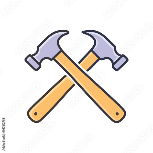 Crossed hammers icon. Teamwork, construction, and building; symbol of collaboration and shared effort.