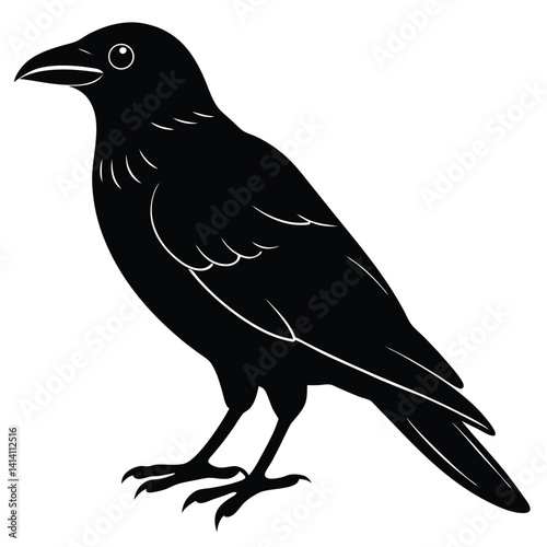 crow isolated on white, crow vector illustration, pet vector art, crow silhouette, animal vector icon, crow line art, eps