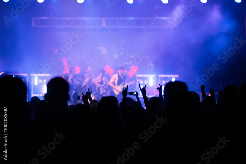 festival, crowd, audience, concert, nightlife, people, event, night, silhouette, fan, performance, party, fun, club, show, live, light, dance, music, stage, rock, cheer, entertainment, happiness, popular, celebration, perform, pop, excitement, sound, musician, illuminated, group, band, disco, youth, happy, cheerful, discotheque, loud, star, clap, jam, act, nightclub, art