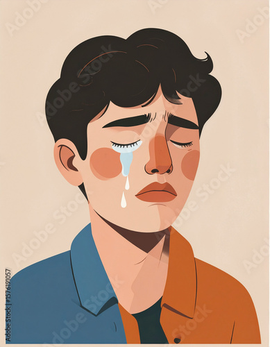 Crying Male Portrait – Stylized Surreal Illustration of a Tearful Man Expressing Vulnerability