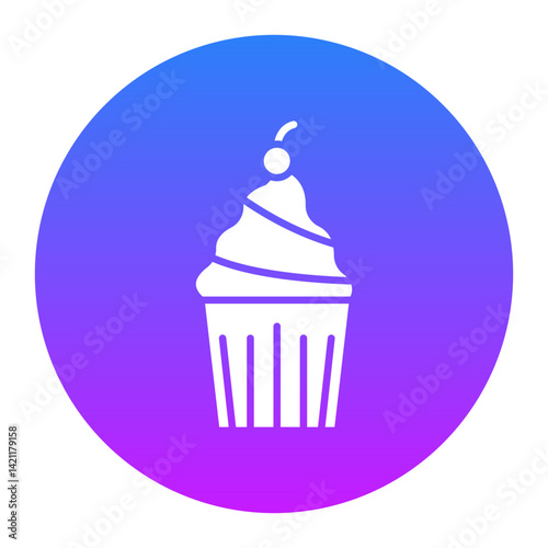 cupcake, dessert, sweet, baked, treat, party, icing, small, icon, vector, illustration