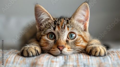 kitten, cat, tabby, blue, eye, curious, pet, felino, animal, adorable, cute, fluffy, small, young, playful, domestic, mammal, fur, soft, paw, nose, whisker, closeup, portrait, photo, image, home, sweet, lovely, friends, happy, relaxed, cosy