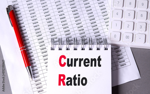 CURRENT RATIO text on notebook with chart , pen and calculator