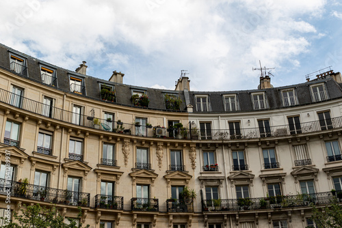 building, facades, curved, architecture, window, balcony, sky, cloud, apartment, exterior, rooftop, chimney, antennae, plant, building exterior, city landscape, urban, europa, paris, residential, apartment building