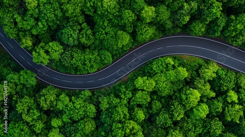 Curving Highway Through Lush Tropical Forest Highlights Green Infrastructure