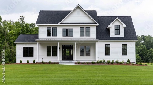 Custom home building success story suburban area architectural design green landscape front view modern aesthetics