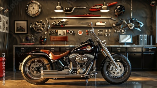 Custom Motorcycle Designer's Workshop Blank Business Cards Sketches Leather Seats and Chrome Parts Creative Workspace for Motorcycle Enthusiasts and Designers